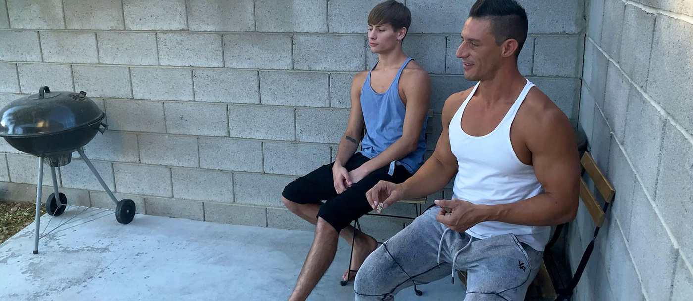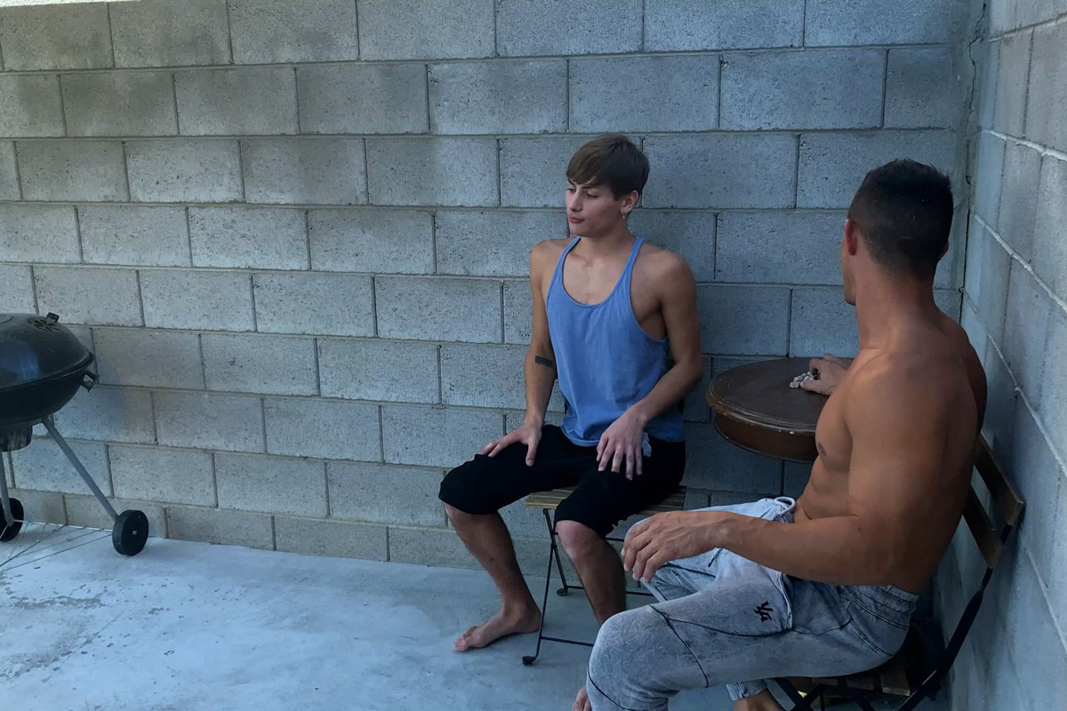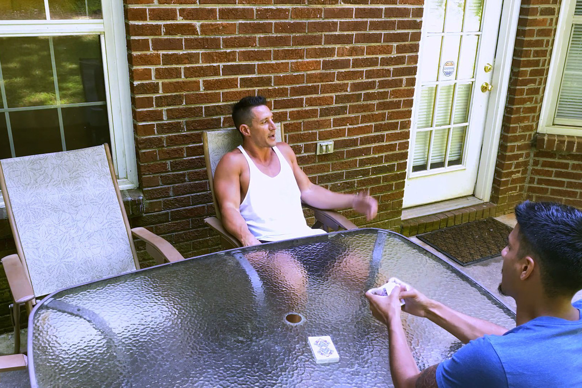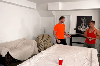 Apollo Fates challenges Jax Thirio to Bottom Games, where the winner tops the loser. They play a few hands until Jax ends up winning, so Apollo immediately gets his pants down and bends over the table, ready to take Jax's huge cock.