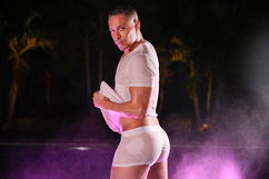 MEN.com features Kaleb Stryker, Justin Matthews, Colby Tucker, Bentley Michaels, Aston Springs, Angel Rivera in a hot atmosphere around the pool.