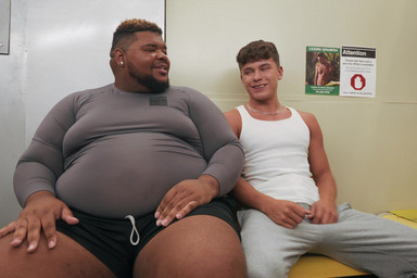 Santana XXL est venu visiter la nouvelle maison de son pote, mais quand il est présenté au beau-frère de son ami, Michael Jackman, et qu'il aperçoit son érection à travers son sweat, Santana ne peut plus penser à autre chose.
